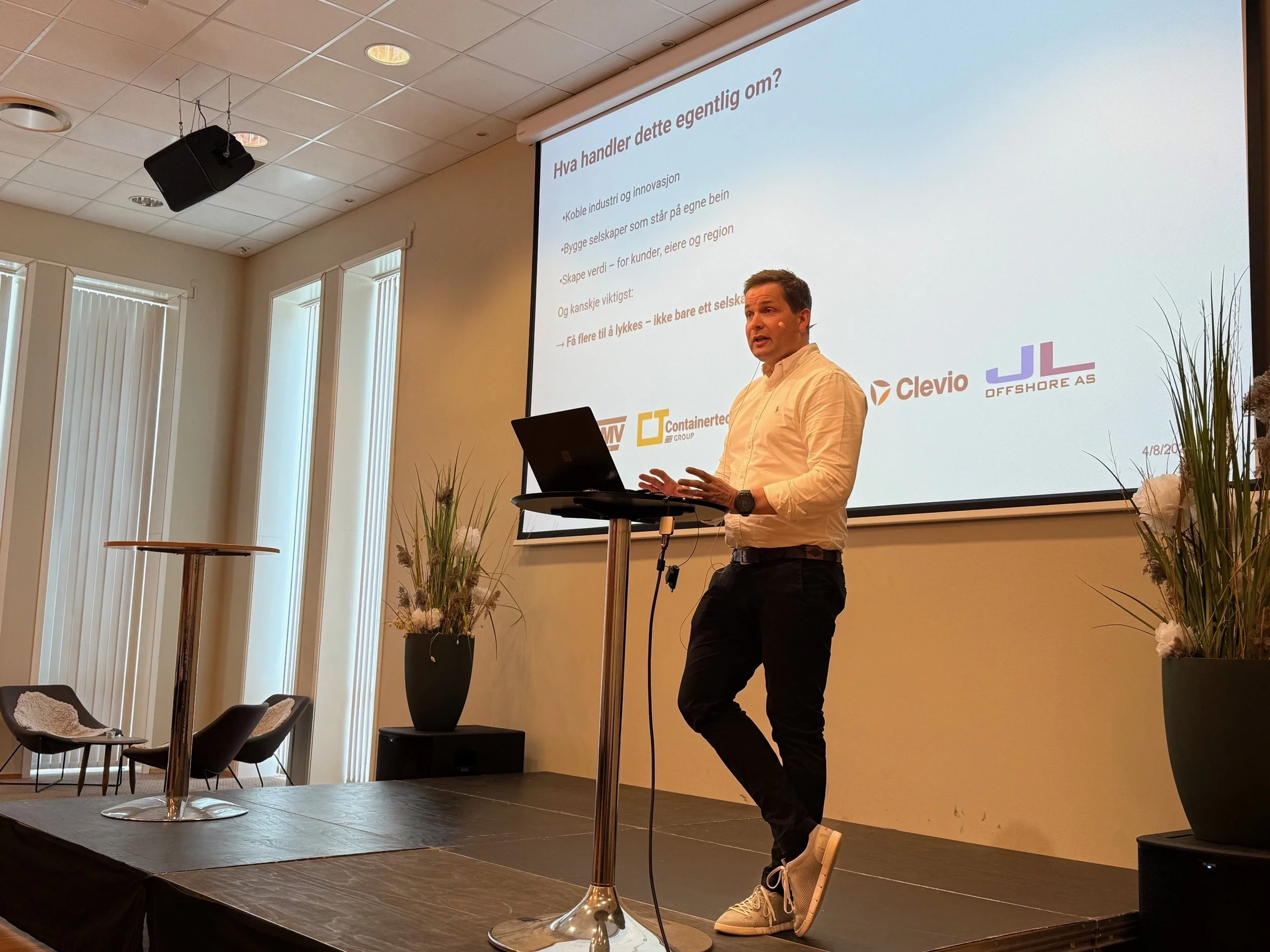 Peder Andersen, CEO ved AMV i Flekkefjord, fortalte hvordan de tenker når de investerer i selskaper. De har investert i rundt 20 selskaper med stort og smått