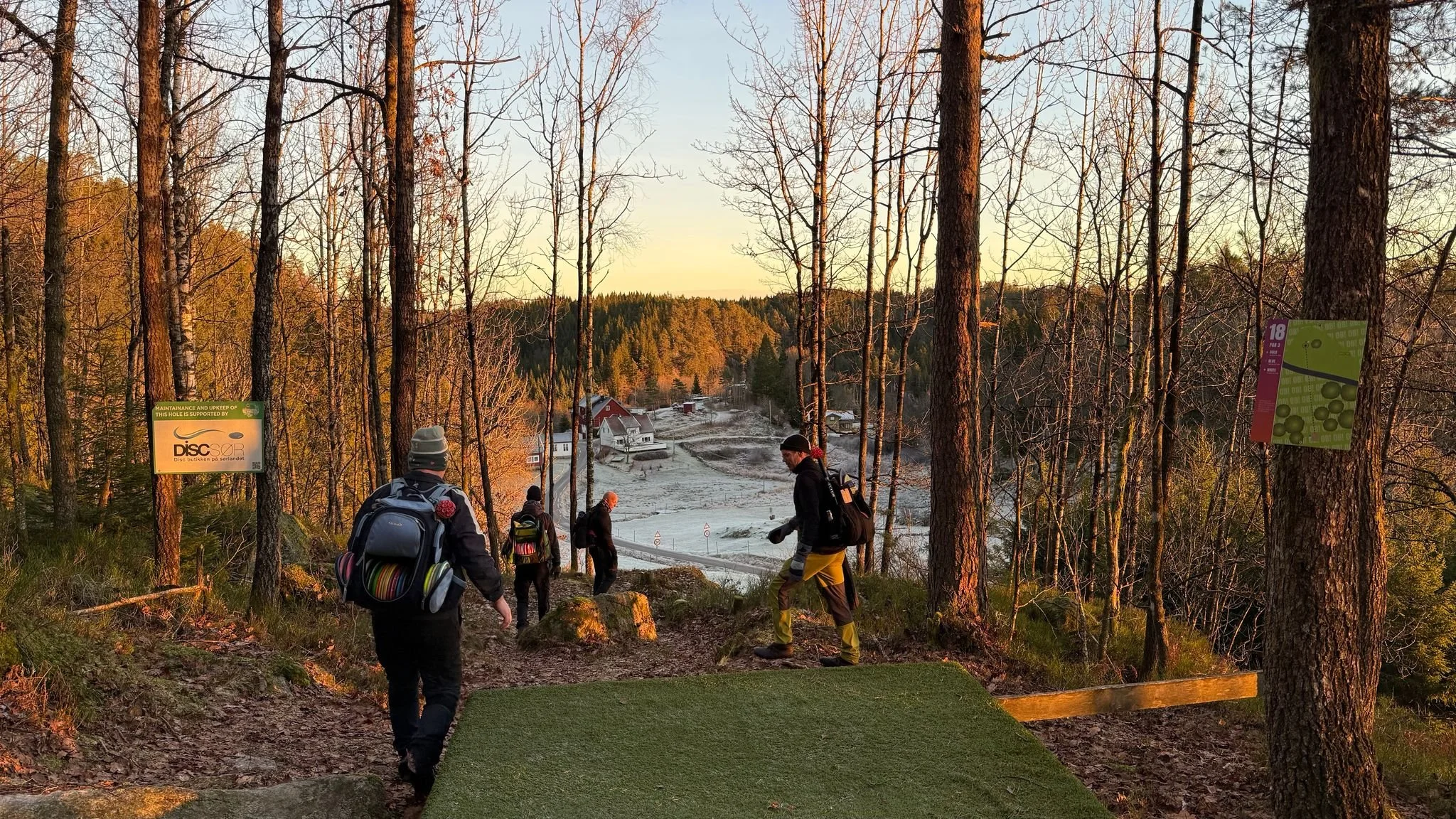Bilde fra diskgolfbanen på Lille Leland gård. Den er regnet som en av de beste i verden og tiltrekker seg tusenvis av turister hvert år.