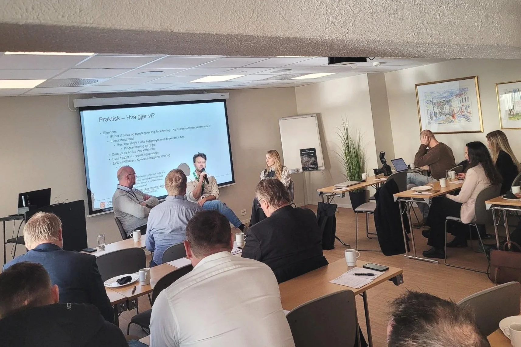Temaet for dagen var hva kundene, kommunene og kapitalen krever av bedriftene når det kommer til bærekraft. En problemstilling som flere av bedriftene løftet frem som både uforutsigbar og krevende, særlig når det kommer til offentlige anbud.